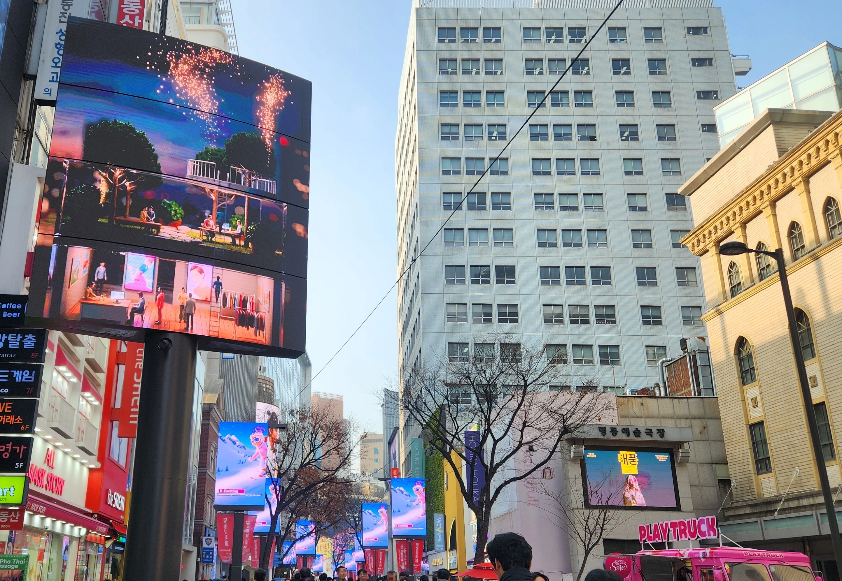 올해 상반기에는 명동8길에도 미디어폴이 설치될 예정이다. 신세계백화점 신관, 롯데영플라자, 하나은행 등 건물 외벽에도 대형전광판이 설치된다.