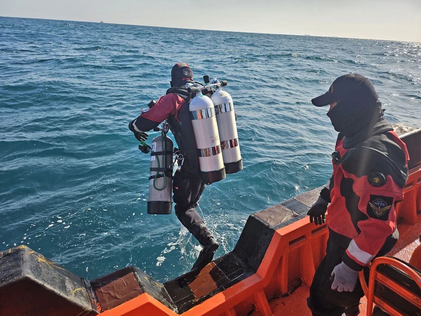 해경의 수중수색은 조류와 그물 등 수중상황을 고려해 수색 대원이 스쿠버 잠수로 수심 30m까지 수색한 뒤 2차로 수심 60m까지 들어갈 수 있는 테크니컬 잠수 방식으로 진행했다.