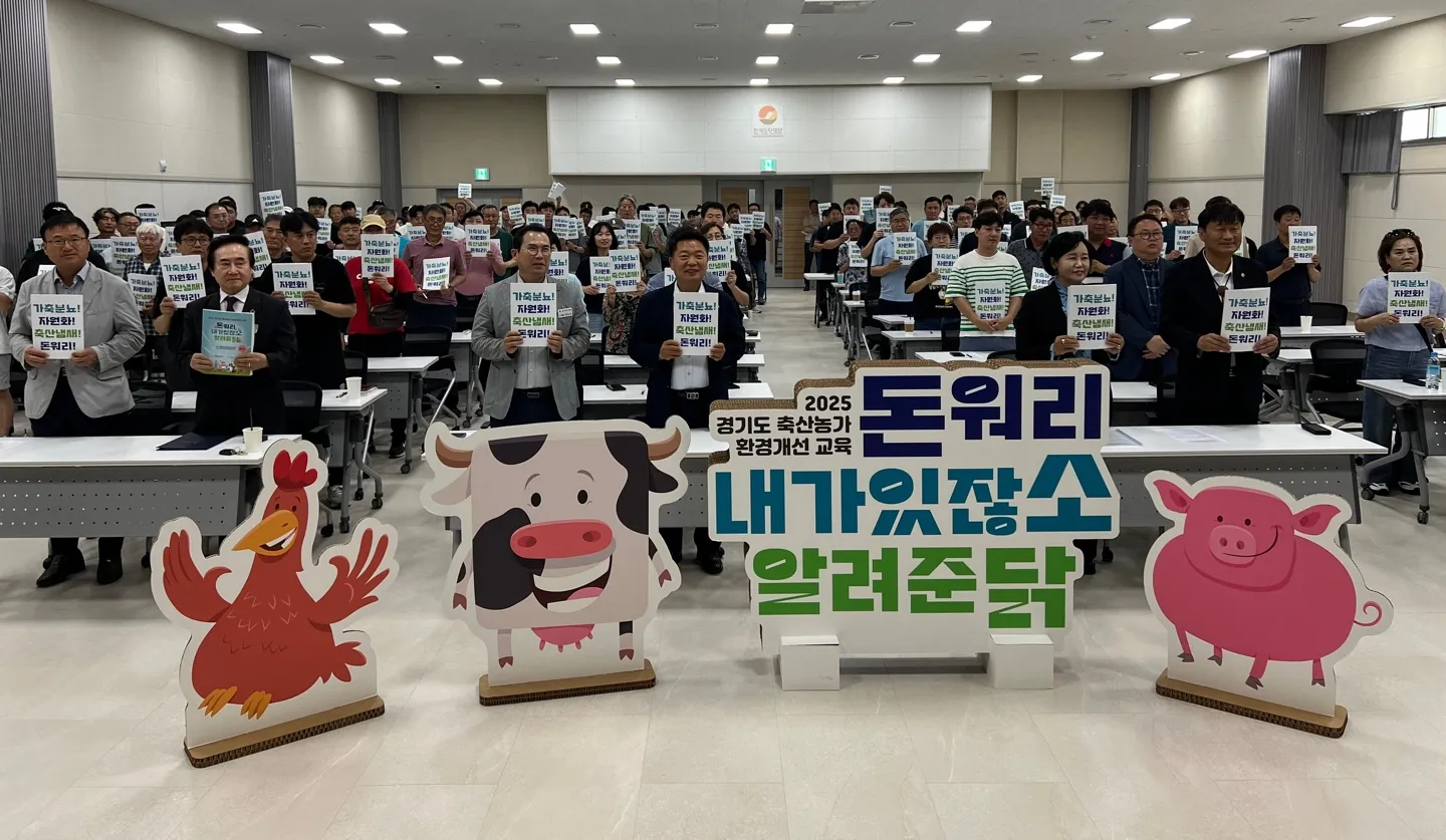 경기도의회 농정해양위원회 이오수 의원(국민의힘, 수원9)은 9일 이천시 경기도자미술관 대강당에서 열린 ‘2025년 축산농가 환경개선 교육(돈워리 내가있잖소, 알려준닭)’ 개회식에 참석해 지속가능한 축산을 위한 환경 개선의 필요성을 공유하고, 관련 정책에 대한 관심과 지원 의지를 밝혔다.