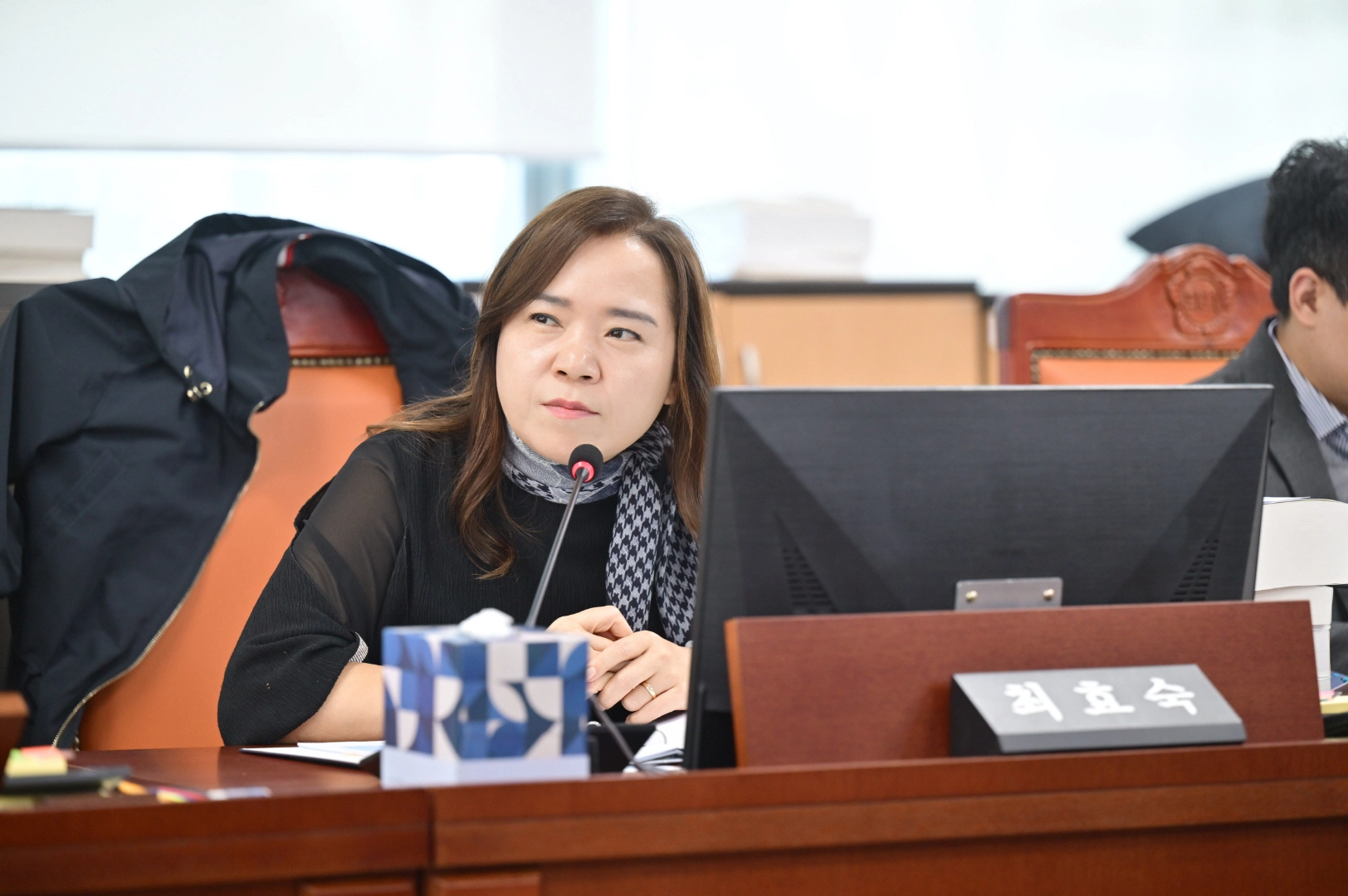 또한, 최효숙 의원은 양평과 파주 캠퍼스에서 진행되는 사업들이 특정 시기에 집중되어 있는 점을 지적하고, “여러 행사가 일정 기간에 몰려 예산이 일시적으로 집중 사용되고 있다”며 “사업 일정을 분산할 수 있는 새로운 아이디어를 마련해 내년도 계획에 반영해 달라”고 주문했다.