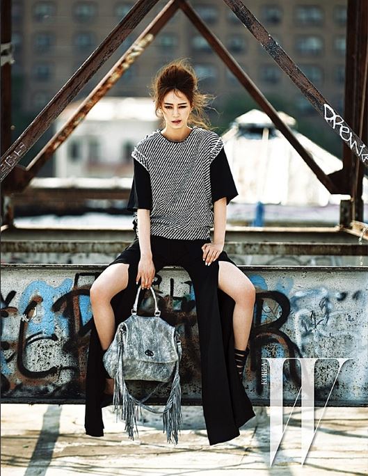 23일 공개된 화보 사진 속 한예슬은 뉴욕의 그래피티 벽화를 배경으로 도회적인 분위기를 연출해 눈길을 끈다.