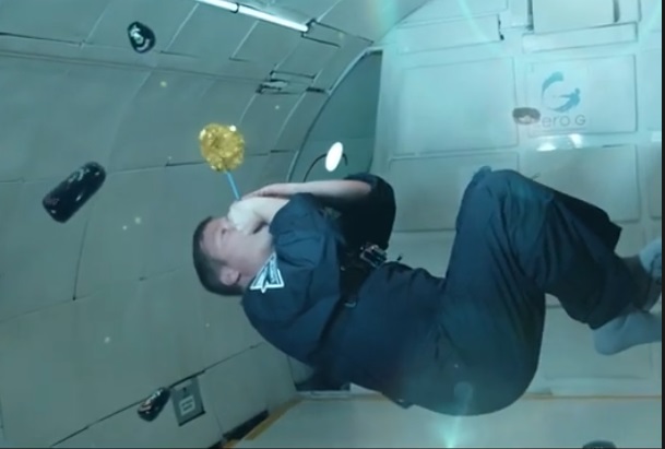 로빈슨스는 비행기에 이번 실험을 위한 승무원들을 태워 고도 3만3000피트까지 상승케 했다. 이어 갑자기 2만 4000피트까지 급강하하게 해 약 3분 정도의 무중력 상태를 만들었다. 그동안 승무원들은 항공기 안에 둥둥 떠올라 주스를 만들어 먹는 장면을 연출했다.