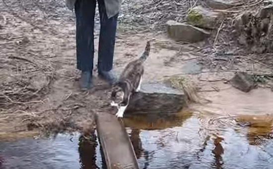 귀여운 고양이의 다리 건너기 영상이 화제네요. 25초가량의 영상에는 계곡에 놓인 철골 다리를 건너는 고양이의 모습이 담겨 있습니다. 폭우로 인해 철골다리엔 물이 차 있습니다. 자신의 발이 젖기 싫은 고양이는 과연 어떤 선택을 했을까요?