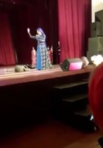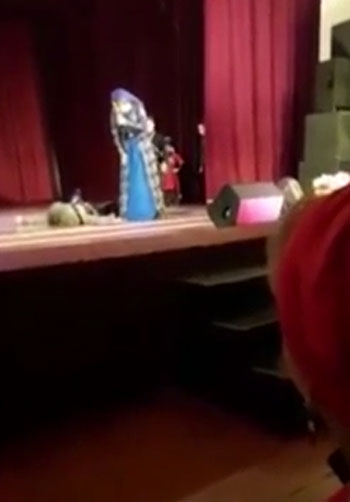 관객 스마트폰에 의해 촬영된 영상에는 ‘어머니의 날’ 콘서트에서 체첸 민요를 부르는 여성 가수 리자 아흐마토바(Liza Akhmatova)와 춤을 추며 무대 가운데로 이동하는 알 쿠사이노프(R Khusainov)의 모습이 보인다.