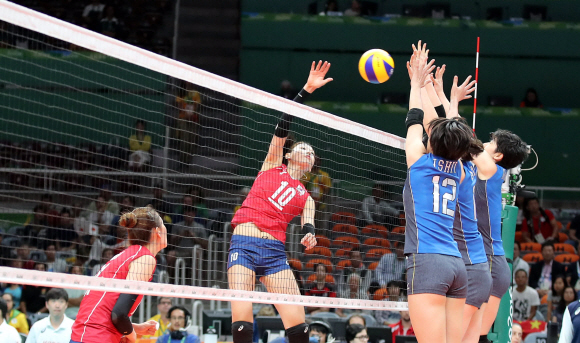 김연경 선수가 6일 오전(현지시간) 브라질 리우데자네이루 마라카나징유 배구 경기장에서 진행된 2016 리우올림픽 여자배구 조별예선 1차전 대한민국-일본의 경기에서 스파이크 공격을 하고 있다.<br>리우데자네이루=올림픽사진공동취재단