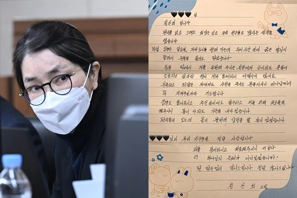 알선수재 혐의 일부가 유죄로 인정돼 1심에서 징역 1년 8개월을 선고받고 서울남부구치소에 수감 중인 김건희 여사가 지지자들에게 자필 편지를 보내 감사의 뜻을 전했다.