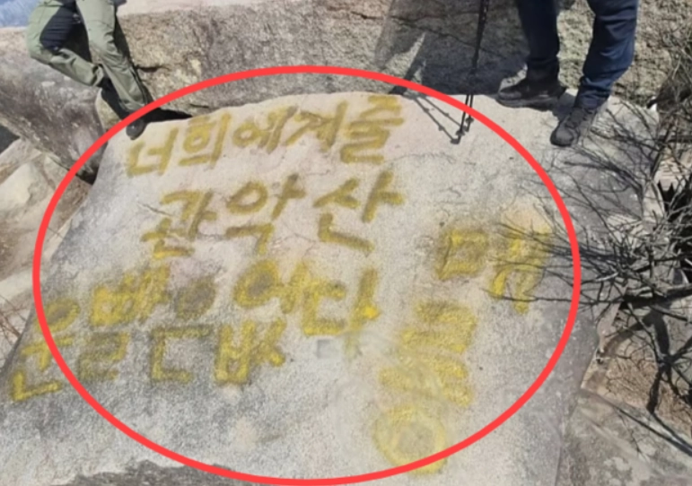 최근 관악산이 “정기가 좋다”는 입소문을 타면서 방문객이 급증한 가운데, 이를 조롱하는 낙서가 등장해 논란이 일고 있다.