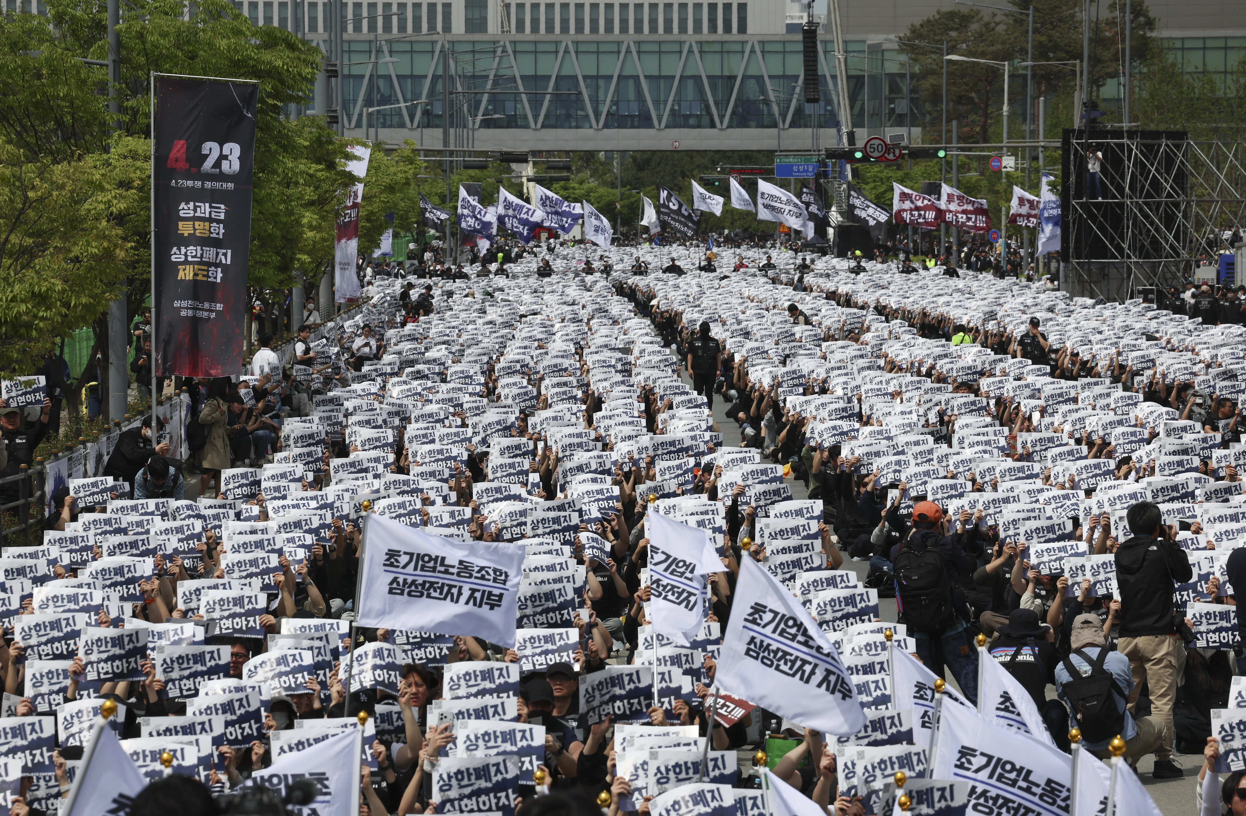 삼성전자 노조는 올해 영업이익의 15%인 약 40조원을 성과급으로 나눌 것을 사측에 요구하고 있다. 협상이 결렬되면 5월 21일부터 6월 7일까지 총파업을 예고한 상태다.