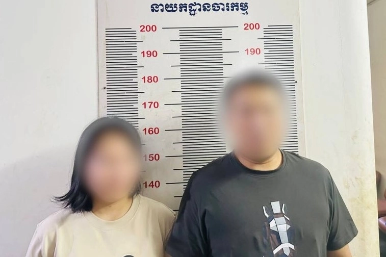 로맨스 스캠 범죄를 벌인 부부 강모(오른쪽)와 안모씨가 지난해 7월 캄보디아 현지에서 다시 체포됐을 때 모습. 법무부 제공