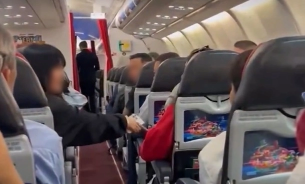 한 중국인 여성의 기내 난동으로 인해 항공기가 1시간 40분 지연되는 사건이 발생했다. 당시 승객들이 촬영한 영상이 소셜미디어(SNS)를 통해 확산하며 논란이 커지고 있다.